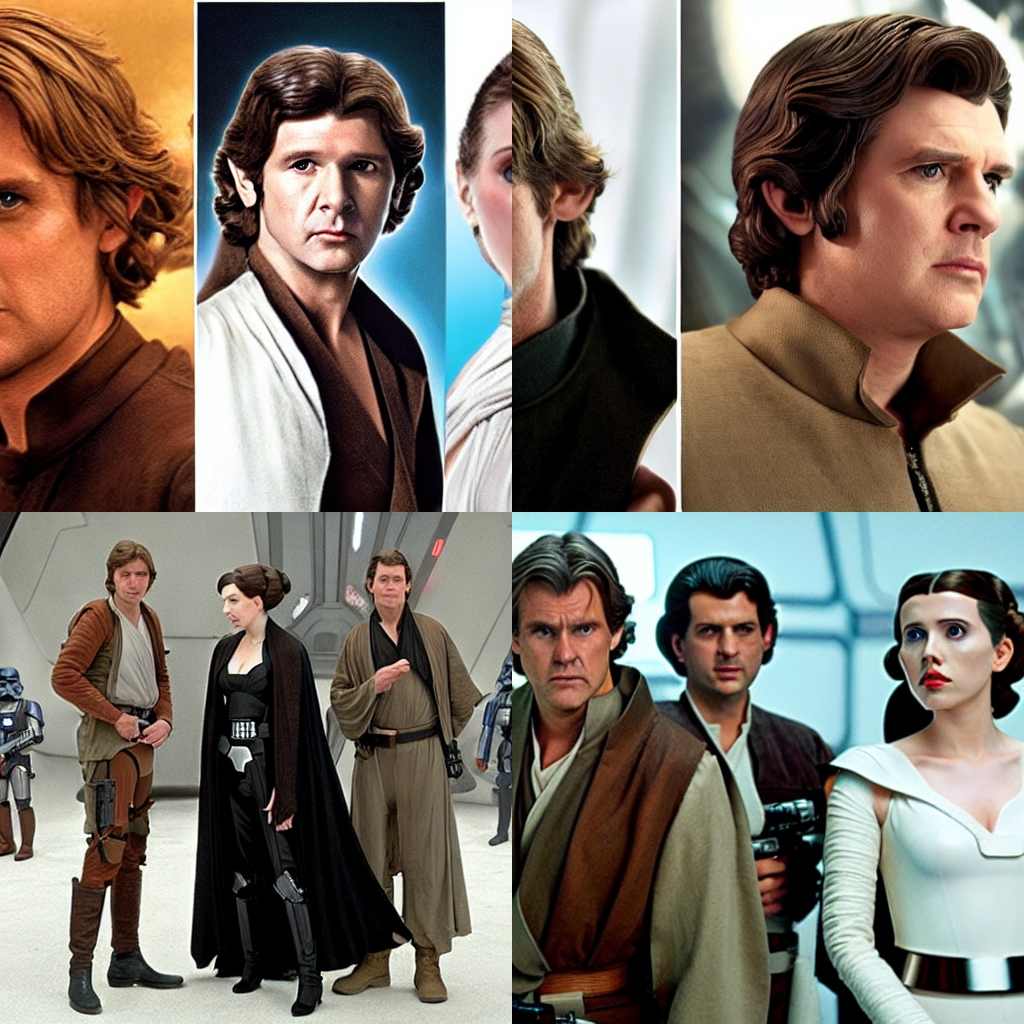 Star Wars starring Rupert Everett as Luke Skywalker, Ben Schwartz as Han Solo, and Scarlett Johansson as Princess Leia Organa
