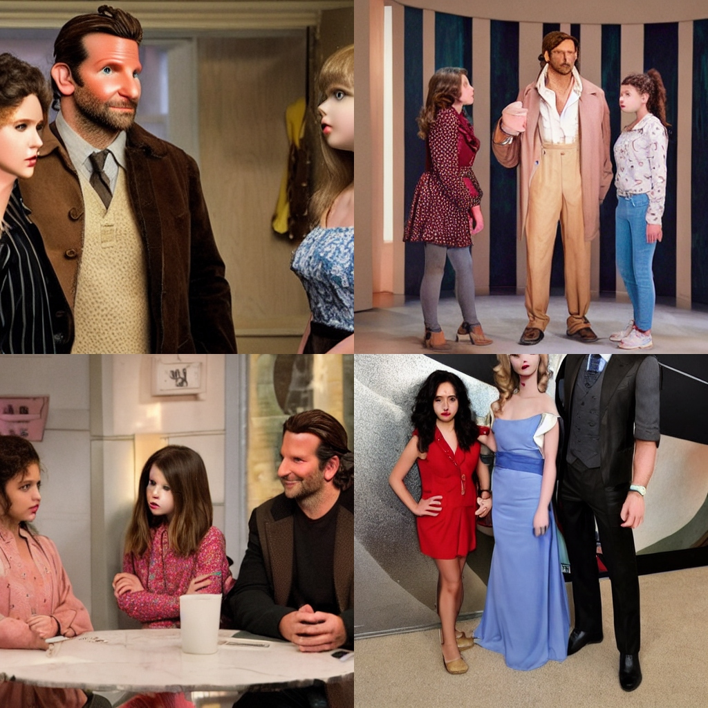 Mannequin starring Bradley Cooper as Jonathan Switcher, Melissa Barrera as Ema 'Emmy' Hesire, and Lulu Wilson as Claire Prince Timkin