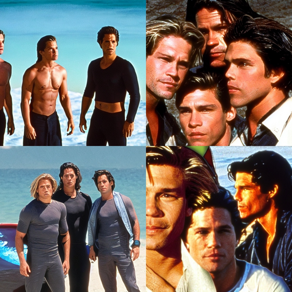 Point Break starring Andrew Stecker as Bodhi, Matt Hookings as Johnny Utah, and James Marsden as Angelo Pappas